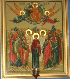 To be examined next is St Luke’s use of the Greek word, anamnesis. It can be translated as “remembrance.” But it means far more than a memory from, let’s say, a past vacation. It means a “calling into presence.” It is an invocation calling upon God’s presence to be with us as we worship. This invocation begins with the first words of the Divine Liturgy: “Blessed is the Kingdom of the Father, and of the Son, and of the Holy Spirit, now and ever and unto ages of ages.” We thus, invoke and enter into the Kingdom of God. The three Persons of the Holy Trinity are with us as are the saints who are alive in Christ. Also gathered around us are all the events of our salvation as is summarized with these words of the Divine Liturgy that come just before the bread and wine, our Gifts, are offered to God: