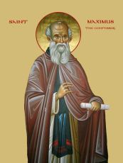 St Maximus the Confessor was born in Constantinople around the year 580. He was raised in a devout Christian home. He received an excellent education, then entered into government service and was a counselor to the emperor Heraclius (ruled 611 – 641). Constantinople and the imperial court were very sympathetic to the Monothelite christological heresy (meaning Christ had only one will — divine will — thus diminishing his human nature among other theological errors). He left the court and became a monk. He began to write extensively and persuasively regarding correct christological understanding of Christ’s hypostatic union as defined by the fourth Ecumenical Council (the Council of Chalcedon). His defense of orthodox Christology, though very influential, brought about his imprisonment and torture (his tongue was cut out and his right hand cut off). His proper understanding of christology also led him to explain further the salvific model of theosis which will be explored in the text below.