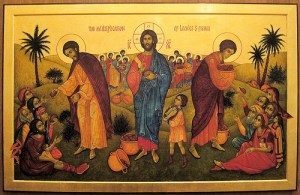 In this eighth week after Pentecost, we have as the Gospel reading St. Matthew’s account of the miracle of the Feeding of the 5,000 (Mt 14: 14 -22). This miracle comes after the execution of St. John the Baptist. Upon hearing the news of his cousin’s death, Jesus, by boat, departs to a deserted place alone with his disciples. But his solitude did not last long — a large crowd followed him from the surrounding towns and villages. Looking at the crowd’s condition, Jesus has mercy on them and heals their illnesses.